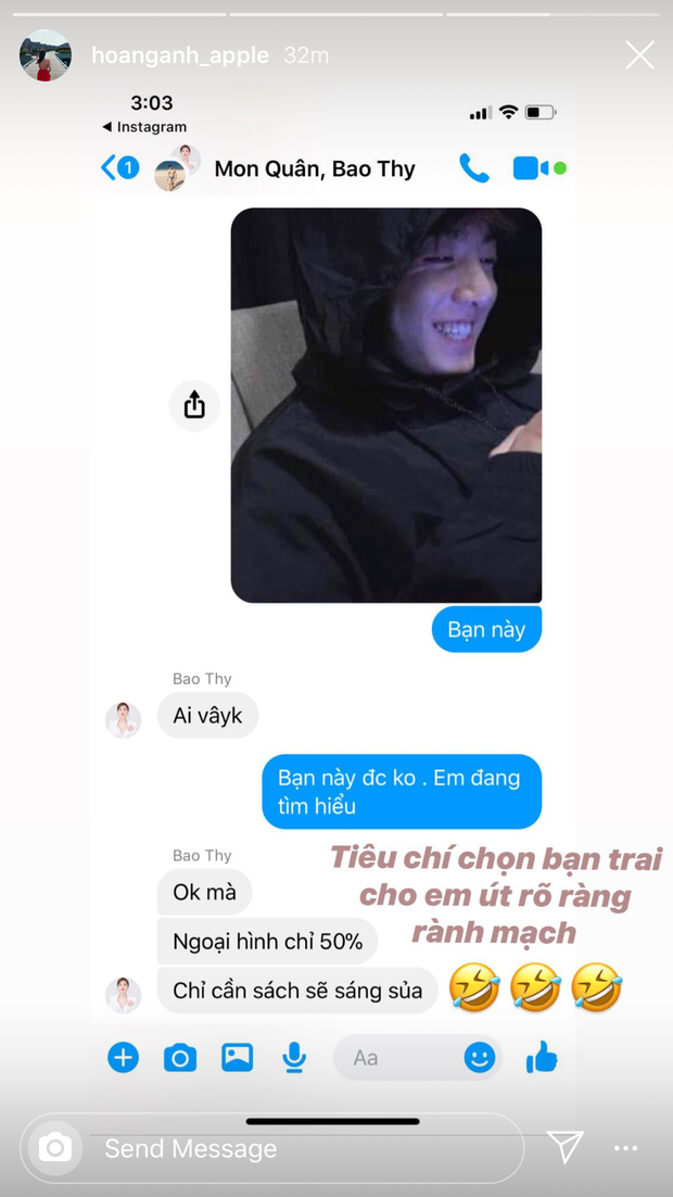 vàng anh Apple gửi ảnh Jongkook (BTS) và tự nhận là bạn trai mình nhưng canh chừng Bảo Thy không biết, nàng ca sĩ còn tích cực tham mưu cho bạn mình nữa chứ